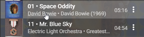 If Queue / Always Show Menu is switched Off in Settings then Artist & Album become hyperlinks which will open in the Browse area