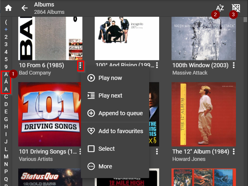 - Jump List - note that A appears twice. This is an LMS scanner version issue not an issue with Material