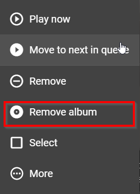 Remove album - added in Material skin v 1.2 - only appears if queue contains multiple tracks from the same album.