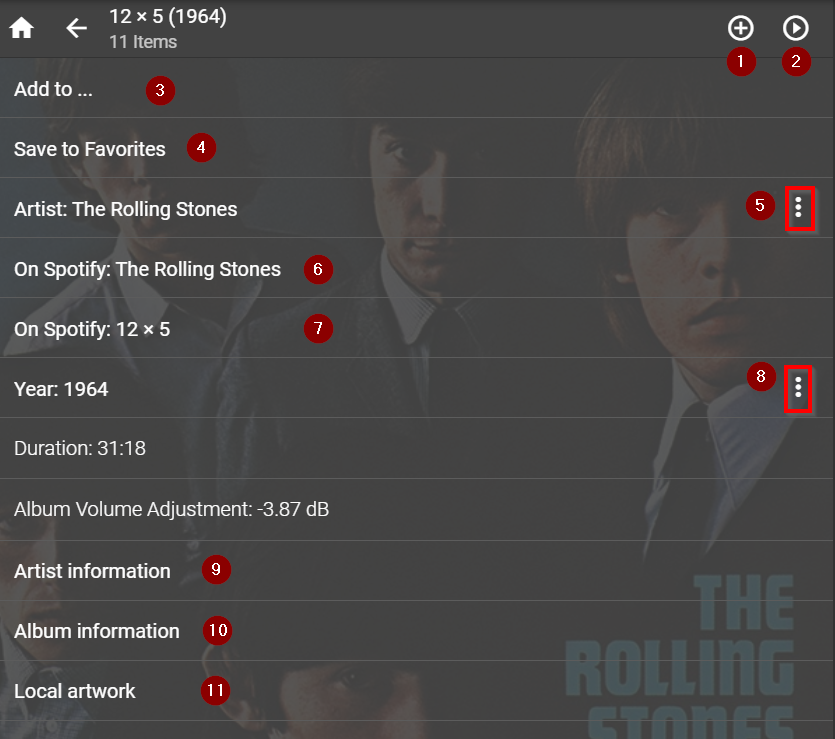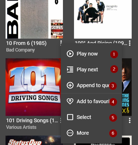 - Album Information - only available if Music & Artist Information plugin (MAI) installed