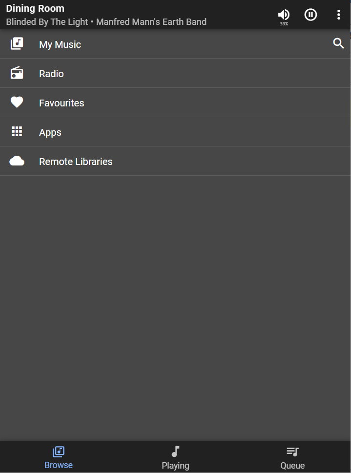 Introduction Mobile Material operating in Mobile full screen app mode - Android / iOS http://lmsipaddress:9000/Material/Mobile Browse Playing Queue Created with the Personal Edition of HelpNDoc: What is a Help Authoring tool?