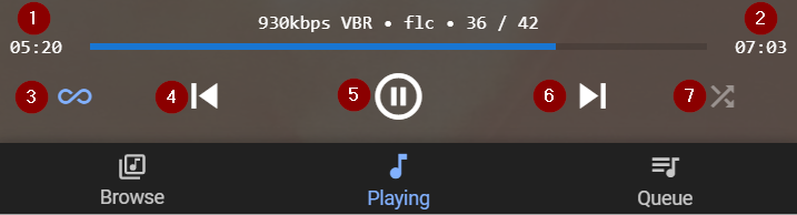 - Shuffle on (blue) /off (grey) - shown in off (grey) state.