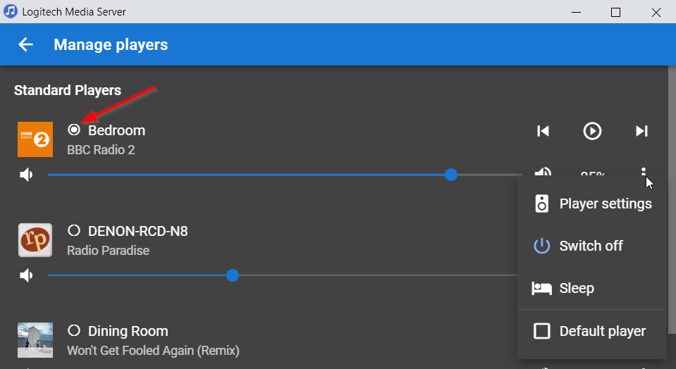 Scroll all the way to the bottom to see Group Players, Sychronise options and to Manage Players